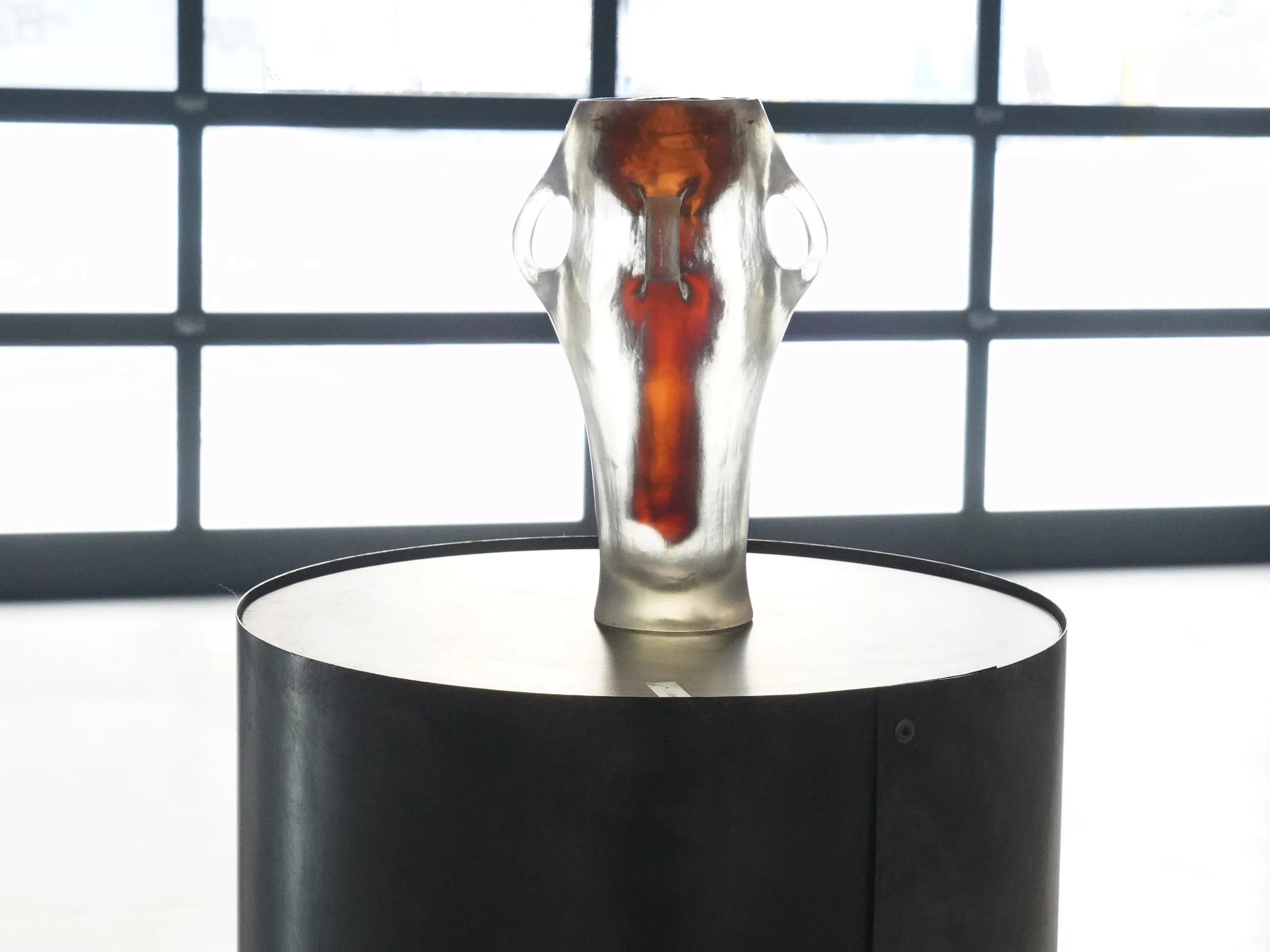 This sculpture appropriates the form of a commercial masturbation sleeve, the Fleshlight, invented in 1995 by Steve Shubin, to interrogate how transgender bodies are reduced to objects of sexual consumption and penetrative fantasy. the Sleeve, cast in translucent hydrogel is mimetic, it’s flesh-like hole is still actively rotting, the work materializes the violence of objectification by transforming this discrete tool of fantastical consumption into a visible sculptural object for meditation.